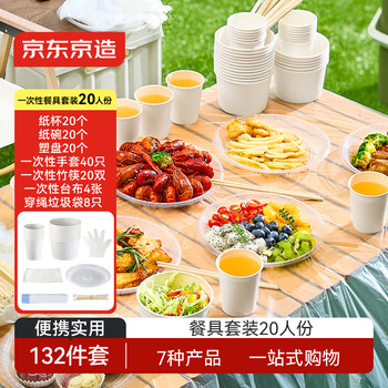 京东京造 20人份一次性环保餐具套装 食品级碗盘杯筷手套桌布 户外野餐
