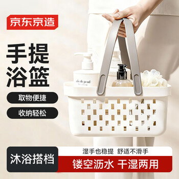 京东京造手提式浴室洗澡篮洗漱框收纳提篮沥水篮学生洗澡洗漱品宿舍洗浴篮